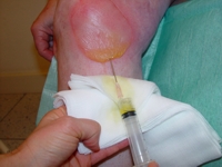 Kantharidin wurde in der Mitte des letzten Jahrhunderts analysiert und als hochwirksames Hautreizmittel (wieder-)erkannt. Einige (höchstens 24) Stunden auf der Haut belassen erzeugt es erst intensive Rötung, dann eine mit Serum gefüllte Blase, die an eine Verbrennung II. Grades erinnert; dieser «Aderlass am Lymphsystem» wirkt am Ort der Applikation entlastend, lokale Stauungen zerstreuen sich meist schon in der Entwicklung der Brandblase, ein rascher Abfluss aus den behandelten Geweben ins Blut setzt ein. Durch Absaugen von überflüssigen und kranken Säften wird so der Krankheit der Boden entzogen. Die Blase wird aufgestochen und der Inhalt entleert. Die Heilung der Blasenwunde dauert etwa 10 Tage und hinterlässt in der Regel eine Hyperpigmentierung ("Schatten"), die bis zu einigen Monaten sichtbar sein kann.